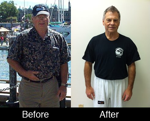 Rick is an amazing story!! I really enjoyed reading this post. I do train with some older people, yet what I mean by older is people in their mid to late 40's or early 50's. I am 38 years old myself and am currently a purple belt in BJJ, so I know how tough it is on the body. Good for Rick for sticking to it, and his before and after pics look great. Personally, I think people who are older can do martial arts (of course if they are healthy enough via their doctor) and encourage them to do so. When I first started I weighed 230 lbs and am a little over 5'8". Unlike Rick, I didn't diet (until I started to cut 10 lbs for a tourney) and in 6 months I was down to 169 lbs!! Plus I had a lot more fun then running like a gerbil on a treadmill. I believe that schools need people like Rick around because it keep the morale up, and members in classes. You have no excuse as a 20 something when there is a member in their busting their butt who is in their 60's. Congratulations Rick!